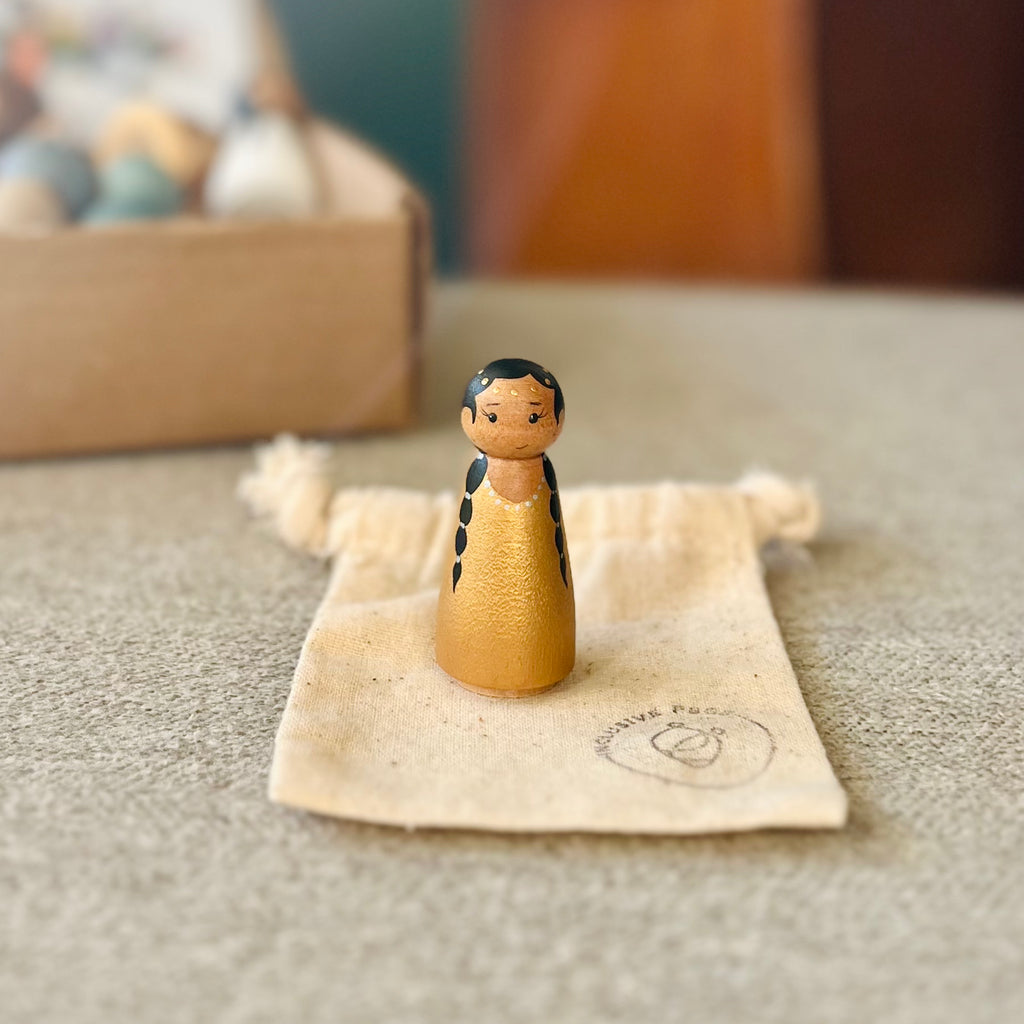 This peg is hand-painted with acrylic paint, sealed with two coats of protective varnish, and stamped on the underside with my logo.