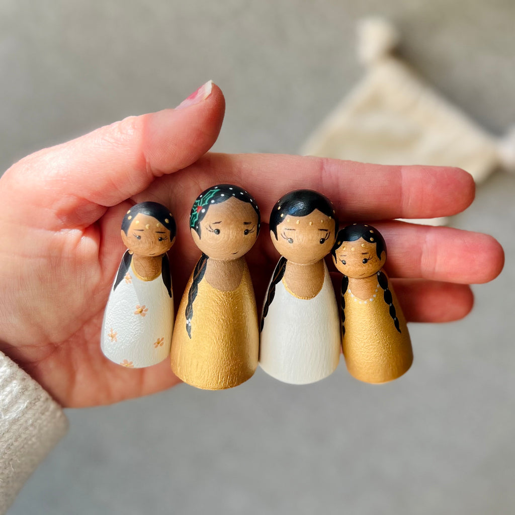 This angel girl comes as part of our 2025 large set but you can buy her as an add-on for a smaller set or an older set! She is 2 inches tall and adorned in gold with silver detailing.